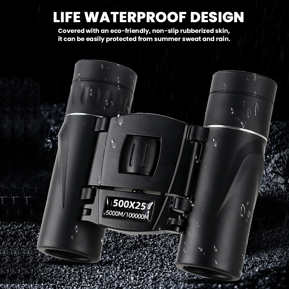 ![]() 500x25 Portable Binoculars Long Range Telescope HD Powerful Binoculars Professional Binoculars for Bird Watching Travel Hunting Football Games Features: 1.500x25 Golden Ratio: Experience authentic, high-resolution views with HD powerful binoculars made of premium-grade materials. Suitable for all ages with adjustable pupil distance, accommodating different users seamlessly. 2.Universal Suitability: for all age groups, the professional binoculars feature an adjustable pupil distance, ensuring a customized fit for everyone. Ideal for family outings or solo adventures. 3.FMC Coating Technology: Enhance your viewing experience with the fmc coating, which reduces light reflection and increases transmittance. Enjoy sharp, clear images with vibrant color fidelity using portable binoculars. 4.Compact and Portable: Designed for easy handling, these portable binoculars are pocket-sized and can be easily stored in a bag or pocket. A favorite among outdoor enthusiasts for convenience and portability. 5.Enhanced Color Reproduction: The coating technology enhances color reproduction, providing clearer and more vivid images. A must-have for nature lovers and explorers who demand the best from their gear. Specification: Origin: Mainland China Color: Black Magnification: 8x Prism material: BAK4 Focusing system: Central focusing + right eyepiece adjustment Lens coating: FMC coating Field of view: 5000/100000 Field of view angle: 7° Exit pupil: 11mm Close focus distance: 5M Objective lens: 22mm Waterproof type: Daily waterproof Note: ![]() 1 x Binoculars |