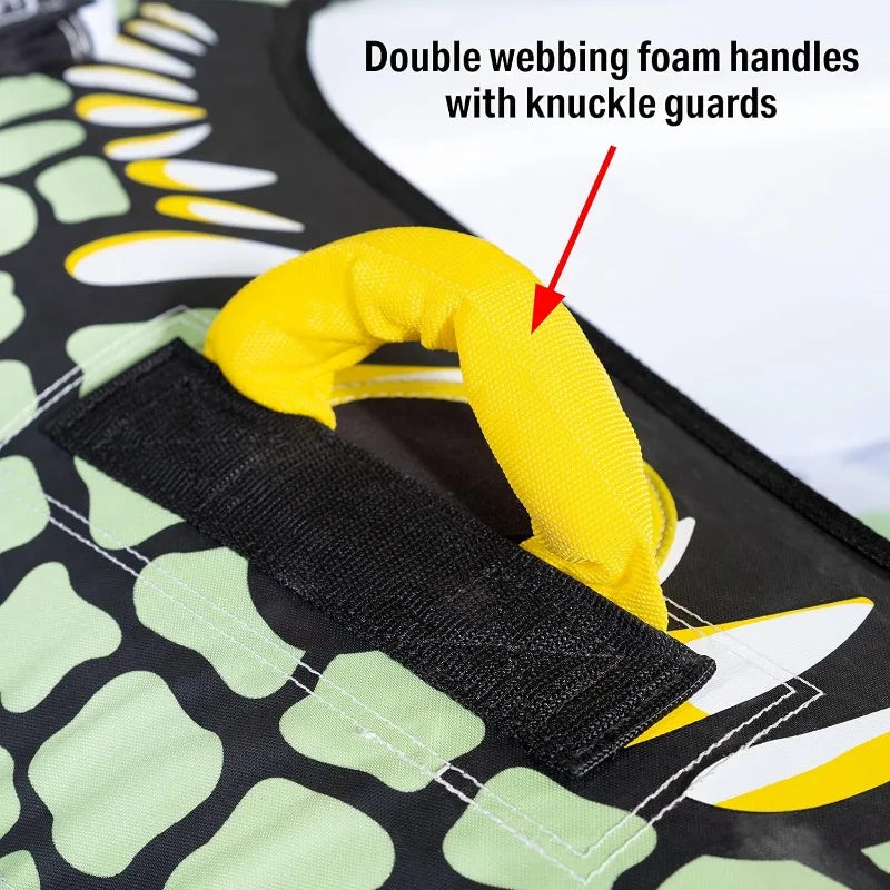 - Sure-grip double-webbing foam handles with knuckle guards deliver secure handling for both riders, plus a reinforced towing system for a dependable connection to your tow rope.